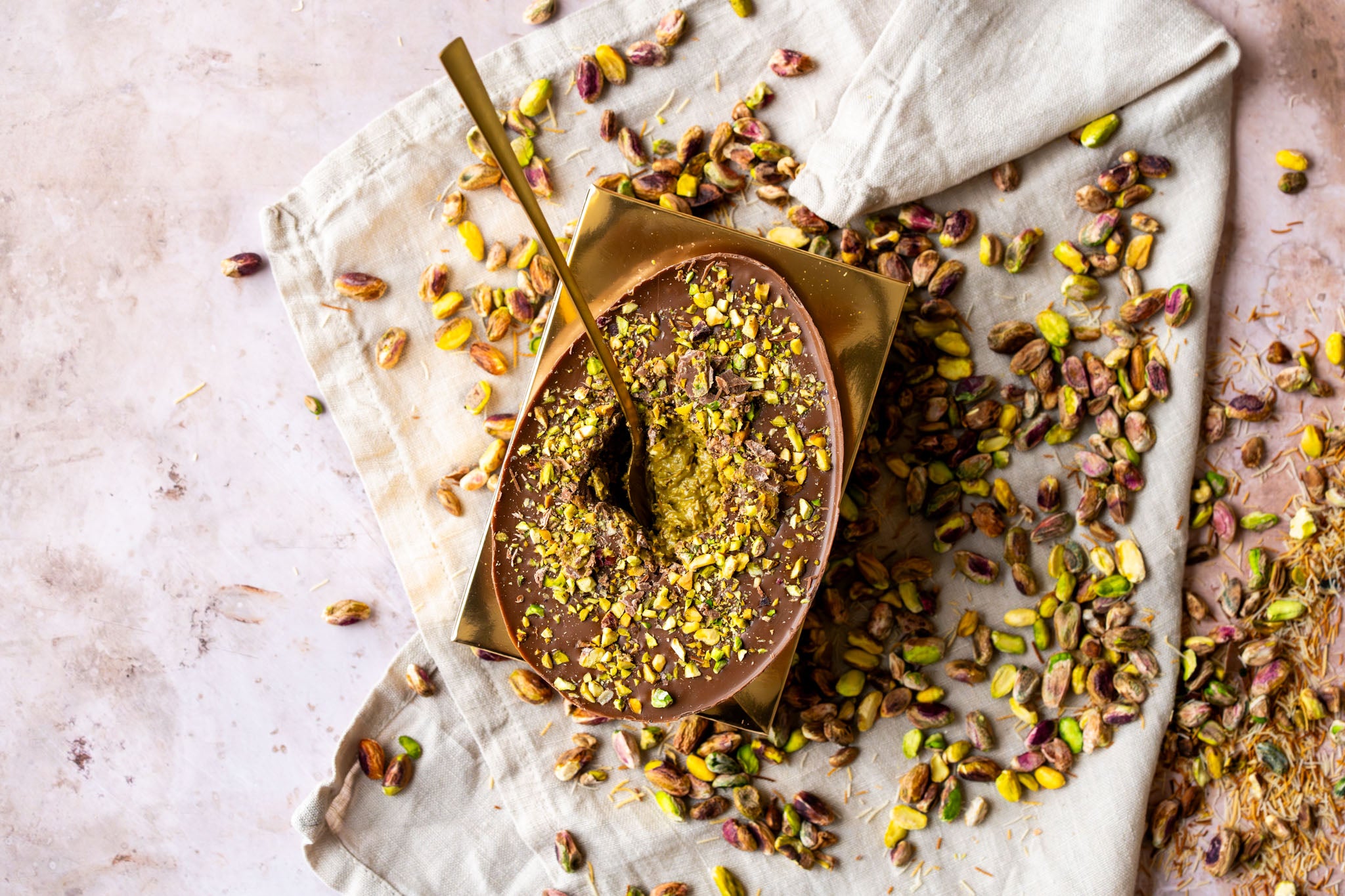 Ambachtelijk pistache Paasei XL | Witte chocolade met pistache crème