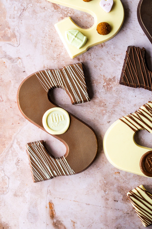 Ambachtelijke chocoladeletter met karamel en kruidnoot