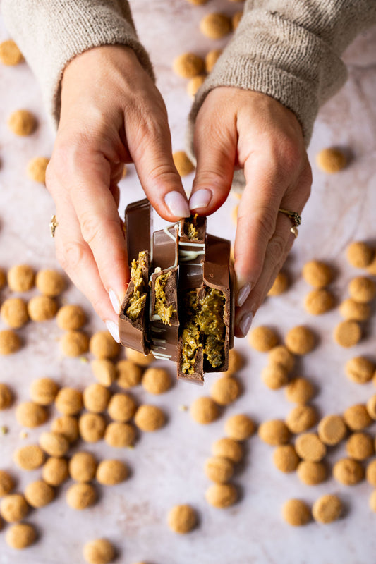 Ambachtelijke Gold chocolade met pindakaas karamel brownie