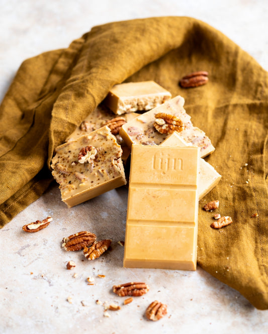 Karamelchocolade met pecannoten en gerookt zout | 200 gram
