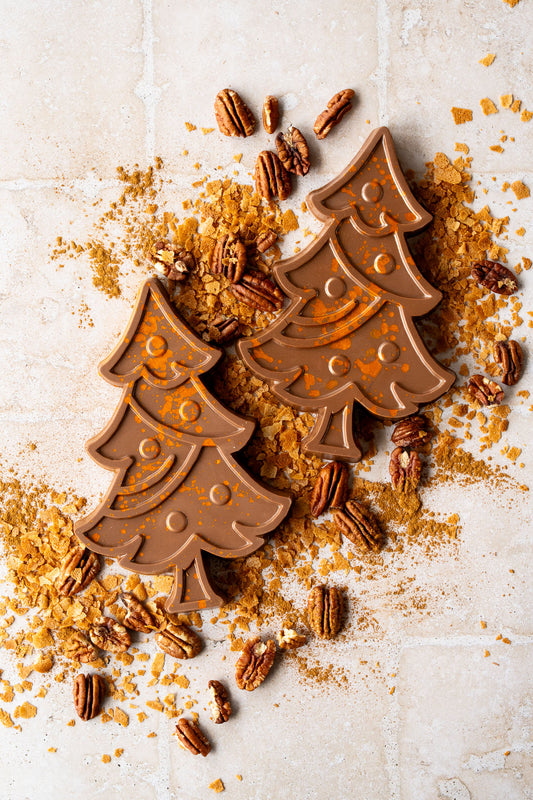 Ambachtelijke kerstchocolade | Kerstboom gevuld met pecan pie