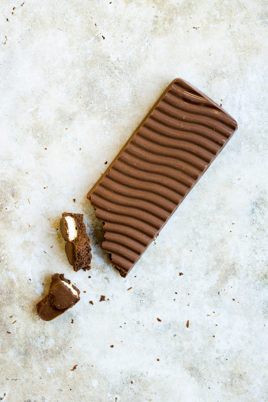 Ambachtelijke melkchocolade met creamy karamel en biscuit
