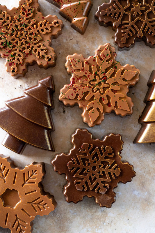 Ambachtelijke kerstchocolade | Kerstbomen en sneeuwsterren | 50-60 gram