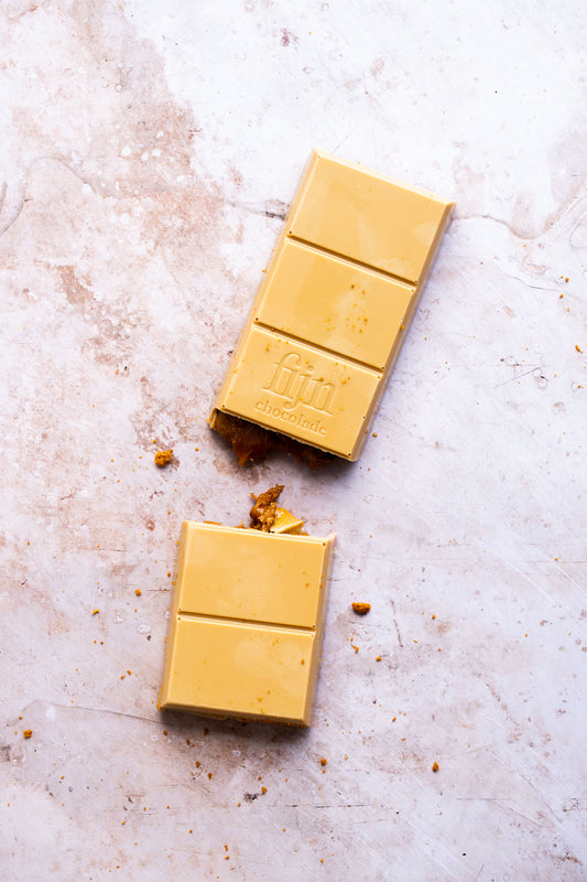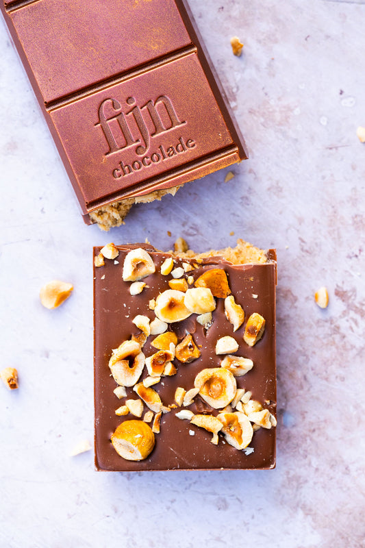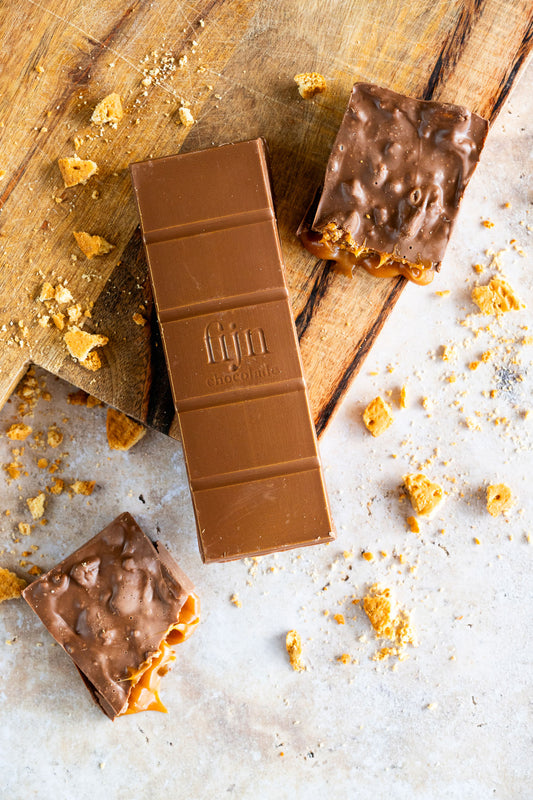 Ambachtelijke melkchocolade met creamy karamel en biscuit