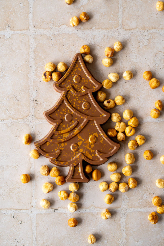 Ambachtelijke Kerstchocolade | Gevulde kerstboom met hazelnoot bueno crème