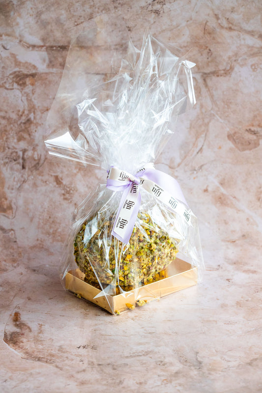 Ambachtelijk pistache Paasei XL | Witte chocolade met pistache crème